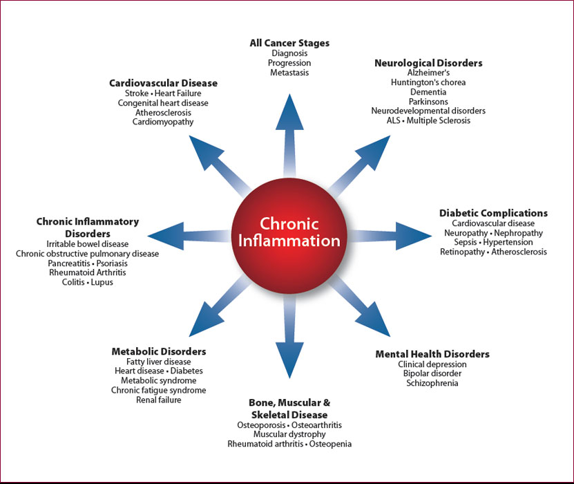 Inflammation gradually weakens the immune system, making it increasingly more vulnerable to the development of chronic illnesses. By decreasing risk factors and harnessing the power of the human immune system, inflammation can be decreased, new cells can be generated and the body can function better.